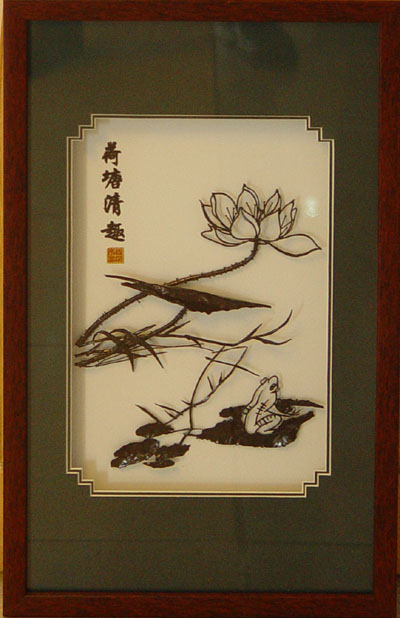 铁画是中国工艺美术百花园中一朵独特的奇葩。它植根于芜湖,起源于清代康熙年间(1662—1722),距今已有300多年历史了。创造人是芜湖铁匠汤鹏(字天池),传闻他同画家肖尺木(字云从)为邻,“目窥其泼墨势”,受到启发,于是以锤代笔,以铁为墨,以钻为砚,将笔墨艺术融汇于炉锤焊接之中,一举创造了铁画,赋予顽铁以艺术的生命。其作品有山水、人物、花鸟、虫鱼、书法等,神态各异,无不入妙。铁画一经问世就受到人们的喜爱,不但“远客多购之”,而且“名噪公卿间”,连皇亲贵族也“一笑倾金赀”来购物。文人墨客更是推崇备至,称赞汤鹏为“铁冶神工”,可以“百炼化为绕指柔”,“直教六法为洪炉”。清代诗人康发祥在他的诗中说:“谁将镔铁作画本,奇巧独有芜湖人。九州之铁不铸错,居然触手能成春。是画是铁技微至,惟妙惟肖形逼真。”`