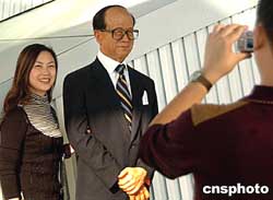 图:李嘉诚蜡像在港成游人合影新亮点