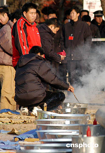 图:包头空难遇难者遣体等待亲属辨认安葬