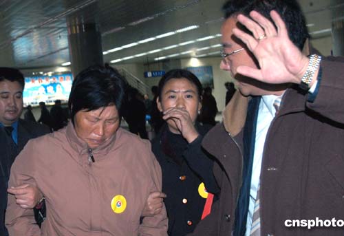 图:包头空难机组人员家属抵达包头