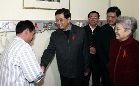 埃菲社报道说,中国国家主席胡锦涛在世界艾滋病日前夕探望了数名艾滋病患者。此举反映了政府与艾滋病作斗争的决心。电视转播的胡锦涛这一举动正式启动了政府开展的大型活动。该活动的目的是纪念艾滋病日,同时发出至今仍无法抑制疫情传播的警报。