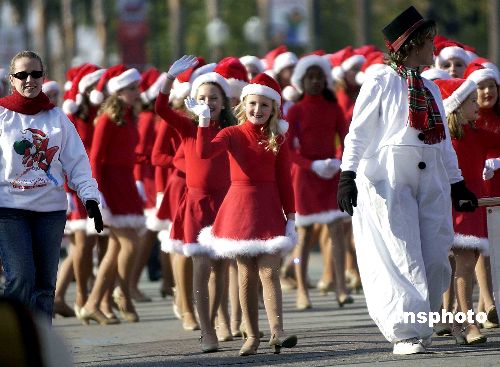 一群活泼可爱的“圣诞小天使”成为游行队伍的亮点。