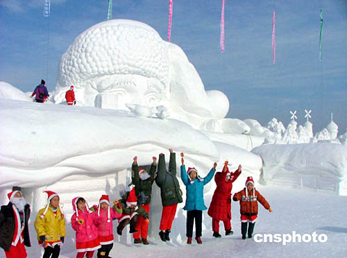 图:世界最大“圣诞老人雪雕”亮相长春