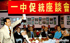 当地时间五月二十日,纽约中国和平统一促进会在法拉盛举行“一中促统”座谈会,前纽约中华公所主席伍廷典(右四)与会,与会侨胞同声抨击陈水扁“五二0讲话”。这是纽约传统侨团首次公开参加纽约侨界的“反独促统”活动。作者:赵海燕