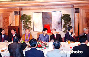 今天的晚宴由香港特区政府和中央驻港联络办共设。出席者还有中联办副主任黎桂康和国家宗教局局长叶小文等人。完