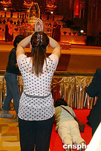 连日来,在香港会展中心举行的“香港佛教暨各界迎请佛指舍利瞻礼祈福大会”,吸引众多信众瞻礼佛指舍利。中新社记者:钱兴强