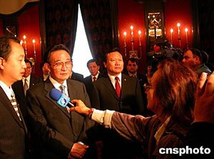 当地时间五月三十日,即将结束对保加利亚友好访问的中国全国人大常委会委员长吴邦国在索非亚接受媒体记者的采访。中新社记者:戴亚平
