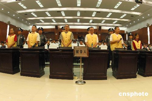 “一二·二三”中石油川东北气矿井喷特大安全事故七月十四日在重庆市第二中级人民法院开庭审理,事故中涉嫌重大责任事故罪的六名犯罪嫌疑人接受公开审判。作者:邹辉