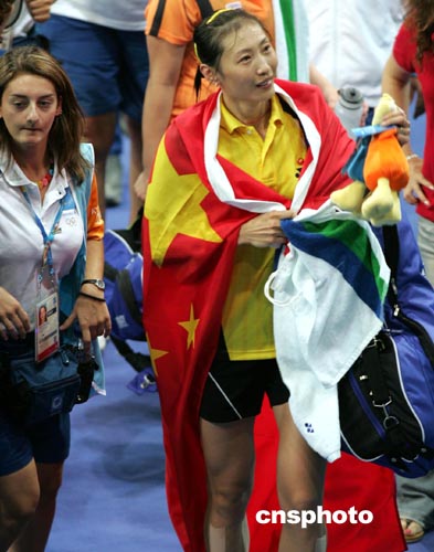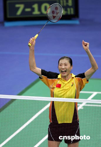 中新社雅典八月十九日电 十年恩怨今朝结,二十九岁的辽宁女将张宁今天在奥运会羽毛球女单决赛中战胜老对手张海丽,夺得金牌。
