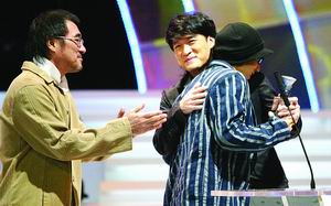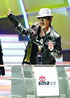 昨晚,掀起现场气氛最高潮的是当选“感动艺人”的傅彪。傅彪上台后因一度哽咽而中断了讲话:“不久前有一个普通的演员在医院接受治疗,他的爱人告诉他在新浪网上接收了上万条的祝福。于是奇迹出现了,今天我站在这里了。我代表我的爱人、我的儿子对网友表示深深的谢意。”傅彪表示:“我一直都提醒自己要在公开场合忍住,但是今天太感动了。”他希望2005年能够重返银幕小试身手。