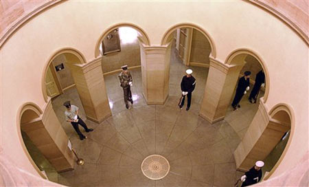 美国总统布什的连任就职典礼定于本月20日举行。成功击败民主党候选人克里的布什即将再次举起右手,重复4年前的誓言。为保证仪式的顺利进行,有关部门9日在国会大厦举行了一次预演。