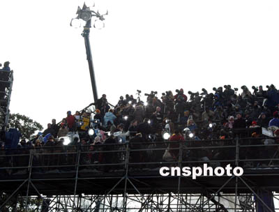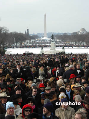 当天华盛顿雪后初晴,但天寒地冻,数十万人聚集在从国会山到华盛顿纪念碑的街道和草坪上,参加布什的就职典礼。他们当中既有为布什连任欢呼者,也有不满布什政府的抗议示威者。