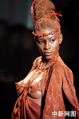 1月26日,在法国巴黎举行的2005春夏高级女装展上,模特展示法国时装设计师Jean-Paul Gaultier的作品。