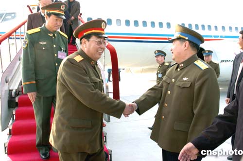 图:空军副司令员刘成军在机场迎接人大代表