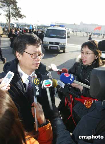 图:香港代表郑耀棠就《反分裂国家法》接受采访