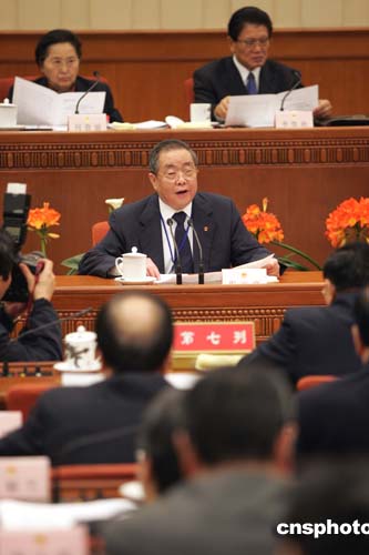图:主席团会听取关于反分裂法草案审议结果的报告