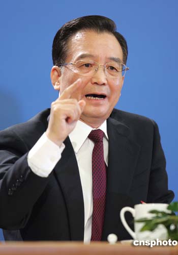 招待会开始时,温家宝说:各位记者,女士们、先生们,大家好。据我知道,参加两会采访的中外记者有2000多名。因为今天会场的限制,到会采访的只有700多名。借此机会,我对记者们对中国改革、建设的关心和客观公正的报道,表示衷心的感谢。我还要说一下,最关心两会的是全中国人民。昨天我浏览了一下新华网,他们知道我今天开记者招待会,给我提出了几百个问题。他们对国事的关心,深深感动了我。他们许多建议和意见是值得我和我们政府认真考虑的。大会顺利结束了,但是我们面前的道路是不平坦的,要保持头脑的冷静,形势稍好,尤须兢慎。居安思危,思则有备,有备无患。我们这个民族在历史上灾难太深重了,这就培育了我们的忧患意识、生存意志和追求和平与发展的愿望。我们这个国家太大,问题太多、太复杂,这就要求我们这个民族不畏艰险、百折不挠、坚定信心、永远奋斗。我愿意借此机会回答记者们的提问。我是用心来回答大家的提问。因此,我不紧张,也不害怕。