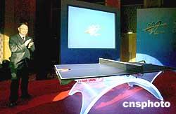 三月二十八日,中国国家体育总局局长刘鹏在上海出席第48届世界乒乓球锦标赛组委会成立仪式,并为组委会成立开球。作者:汤彦俊