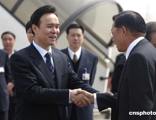 四月一日,中国国民党副主席江丙坤完成在中国大陆三地的“经贸之旅、缅怀之旅”,在北京首都国际机场启程返台。中共北京市委副书记龙新民在机场为其送行。作者:廖文静