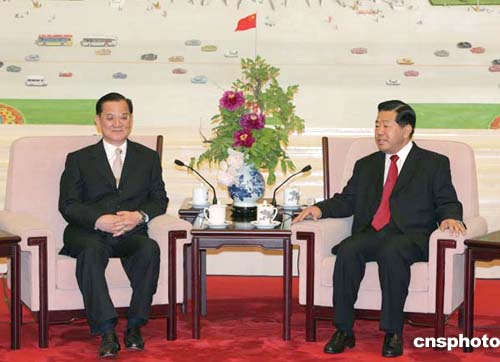 中共中央政治局常委贾庆林28日在北京人民大会堂会见了连战主席率领的中国国民党大陆访问团。连战在会见中作上述表示。