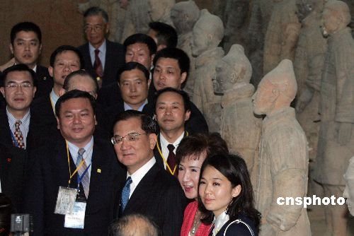 中国国民党主席连战和他率领的大陆访问团四月三十日下午在西安参观秦始皇兵马俑。作者:毛建军
