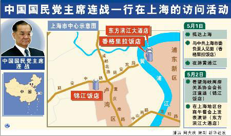 5月1日抵沪后,连战将与中共上海市委负责人见面,当晚夜游黄浦江。