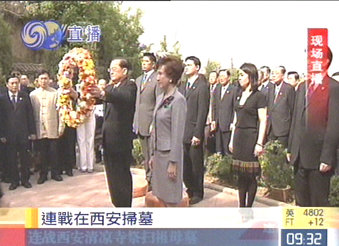 中新网5月1日电 中国国民党主席连战与家人,来到西安清凉寺祭拜祖母。