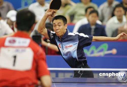 图:王励勤险胜香港选手李静晋级男单八强