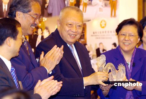 5月6日,香港立法会议员在立法会大楼设午宴,欢送前行政长官董建华,立法会主席范徐丽泰送了一条水晶龙给董建华。作者:洪少葵