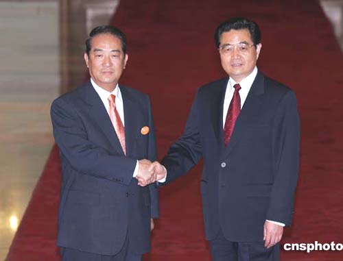 下午3时许,中共中央总书记胡锦涛与亲民党主席宋楚瑜在北京人民大会堂北大厅握手。随后,胡锦涛会见了宋楚瑜。