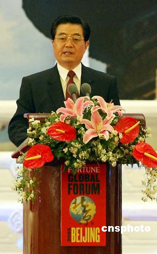 中新网5月16日电 国家主席胡锦涛16日在2005年北京《财富》全球论坛开幕式上发表讲话。全文如下: