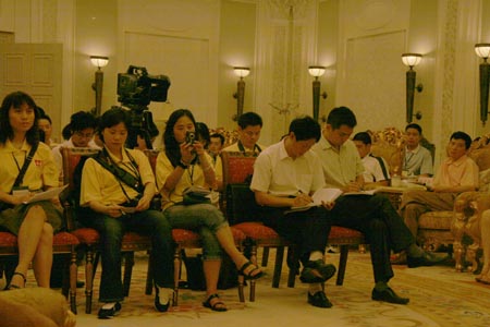 在会见仪式上,黄奇帆副市长向来访的各地媒体介绍了重庆市自从直辖以来发生的一些显著的变化以及取得的重大成就。另外,他还介绍了重庆三峡移民工程的进展、当前移民的生活现状以及对于库区国家级贫困区县的扶贫工作等。