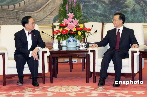 国务院总理温家宝六月二十四日在北京人民大会堂会见刚刚宣誓就职的香港特别行政区行政长官曾荫权。作者:毛建军