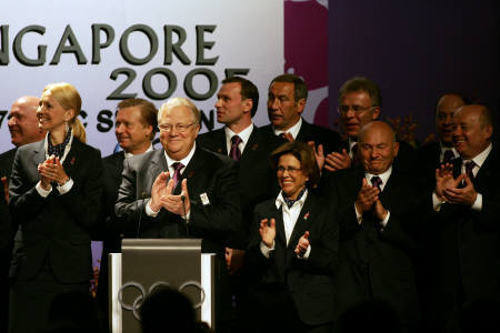 7月6日上午,莫斯科申奥代表团在国际奥委会委员前进行了申奥陈述。在陈述中,他们强调了其具有特色的“奥运河”的创举。图为该国申奥代表团成员鼓掌。图据路透社