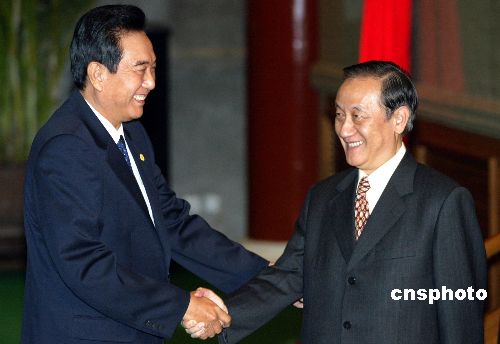 图:陈云林与新党主席郁慕明在北京举行会谈