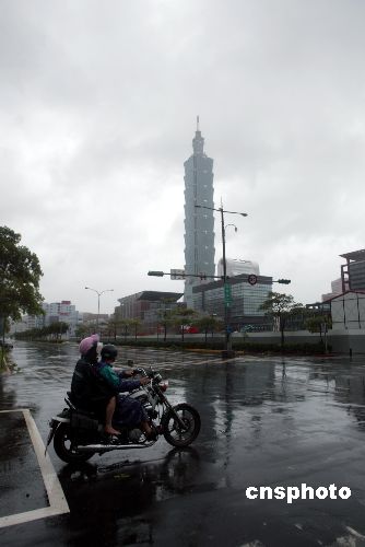 台风笼罩下的台北空旷的街道偶尔有摩托车经过