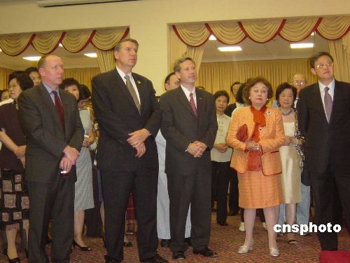 为纪念中国人民抗日战争胜利暨世界反法西斯战争胜利六十周年,中国驻美大使周文重和夫人七月二十一晚在中国驻美大使馆举行招待会。出席招待会的有美国参议院临时议长史蒂文斯先生,美国国务院副国务卿多布里扬斯基先生,美国国会众议员伊斯突克先生,国会众议员科克先生,以及陈香梅女士,当年帮助中国人民抗战的美国空军“飞虎队”成员代表,华府华人华侨代表三百多人。作者:汤伟