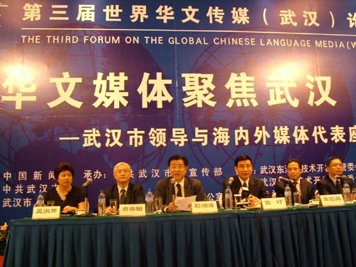 今天下午,中共武汉市委书记苗圩率众官员,与出席第三届世界华文传媒论坛的三百多位代表座谈,台上台下互动,场面热烈,情景感人,从武汉人文明过马路,到武汉的“东方芝加哥”定位,再到“天上九头鸟,地上湖北佬”,一时间,武汉的点点滴滴都为海外传媒老总所关注,官员们既忙碌应答,又喜上眉梢。