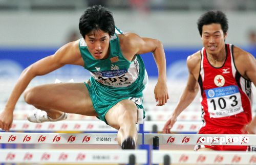 十月十九日晚,在南京奥体中心进行的十运会田径男子一百一十米栏的预赛中,奥运冠军刘翔轻松晋级。作者:汤彦俊