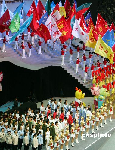 中新社南京十月二十三日电 (记者 王欢)南京奥林匹克体育馆内上演了一场欢庆与祝福的派对,经过十二天的激烈竞赛,第十届全国运动会今晚在此间落下帷幕。国务院总理温家宝出席闭幕仪式并宣布:中华人民共和国第十届运动会闭幕。