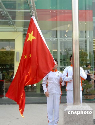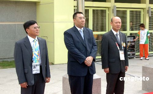 参加东亚运动会的中国代表团举行升旗仪式二十八日,参加第四届东亚运动会的中国代表团在澳门体育馆前举行升旗仪式,澳门社会文化司司长崔世安、中国代表团团长段世杰、澳门第四届东亚运动会组委会主席萧威利和运动员代表出席升旗仪式。作者:梁永强