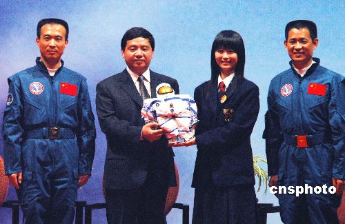 十二月一日,澳门举行“航天英雄与学生相聚在澳门”真情对话会,三千多名学生与“航天英雄”进行面对面的交流,會上澳门学生向“航天英雄”赠送自制的“航天机器人”。作者:梁永强