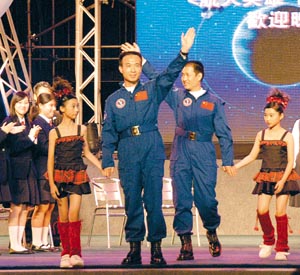 费俊龙、聂海胜在晩会上还应邀上台接受学生提问。对于学生问及他们在太空中飞行有否感觉害怕,以及一旦宇宙飞船发生意外时会如何处理等问题时,二人都表示皆因平日训练有素,即使碰到问题,只要按照程序逐步处理,便会迎刃而解。