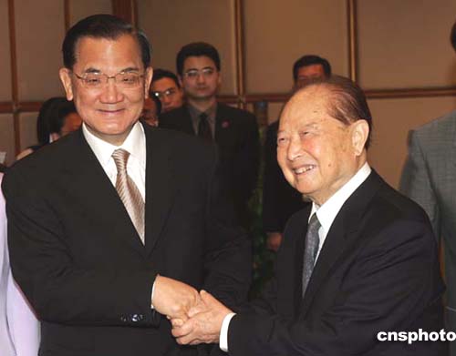 中国国民党主席连战今年5月2日上午,在上海锦江饭店小礼堂与海协会会长汪道涵会面。