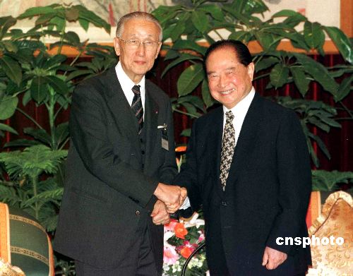 图:汪道涵1998年在上海会晤台湾海基会董事长辜振甫