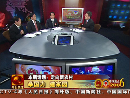 观众朋友,这里是中央电视台中文国际频道,欢迎收看《今日关注》两会特别节目——中国焦点2006。