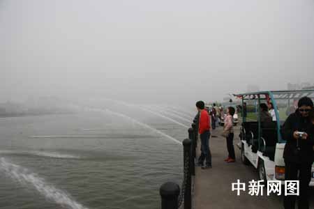 5月12日上午,参加首届网络媒体山西行采访团参观了汾河公园。由于前一天刚下过雨,气温明显下降,采访团成员在参观过程中普遍感到十分寒冷。