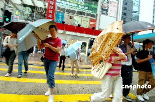 5月17日,香港受到台风“珍珠”影响,天文台发出三号强风信号,市区风雨交加,令市民出外诸多不便。作者:洪少葵