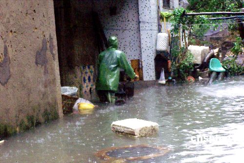 受今年第一个强台风“珍珠”横穿粤东南澳岛,在二十二小时内录得降雨量达二百一十三点九毫米,是今年南澳岛最大的一场强降雨。五月十七日傍晚六时许,县城后宅镇南光村一带由于地势低洼,村头巷尾水深没膝,不少村民家里的睡床也与雨水齐平,自行车轮没在水中基本看不见。村民纷纷启动电泵排水或垒沙袋等措施抗灾自救。作者:李怡青