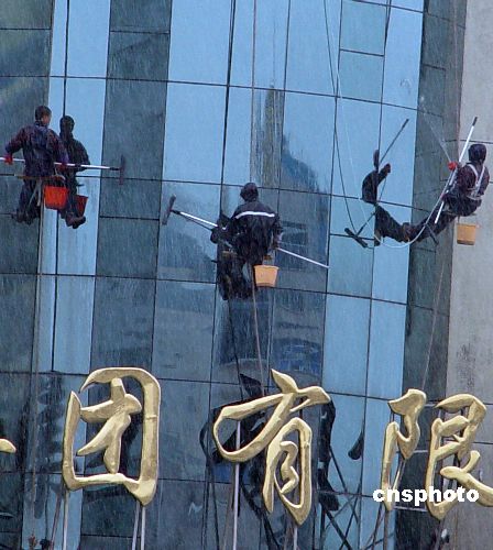 5月17日,因受台风“珍珠”影响,浙江省温岭市城区下起了大雨,而在浙江曙光控股集团有限公司办公大楼的玻璃幕墙上,却有三个蜘蛛人,依旧冒雨干着清洗外墙的活,场面令人动容。遗憾的是因是远望,不知这三位工人是哪家清洁公司的,都叫什么名字。作者:黄晓慧
